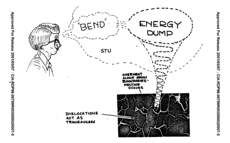 His engineering hypothesis? That energy is dumped into the grain boundaries of metal, softening them temporarily. He suggested the dislocations act like “transducers” of unknown energy, possibly sourced from another dimension or field of consciousness. In one experiment, he and metallurgist Severin Dahlen documented changes in hacksaw blade hardness after multiple PK Parties, suggesting a field effect beyond any individual’s intent.