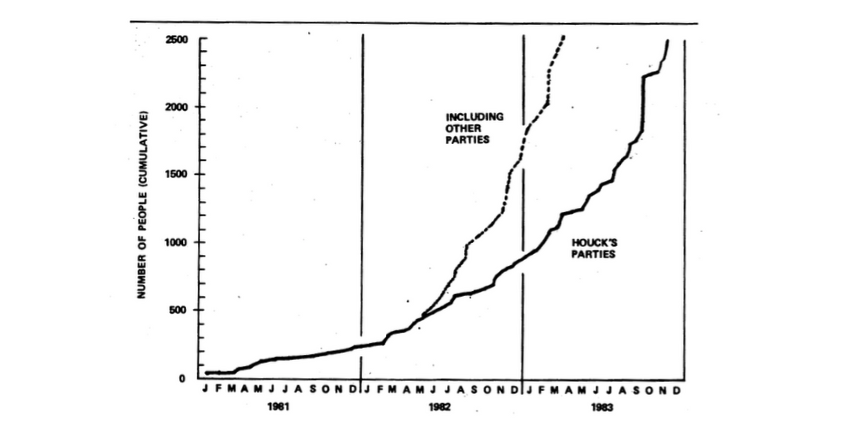 Houck organized his parties like a psychic bootcamp—with stages of initiation: